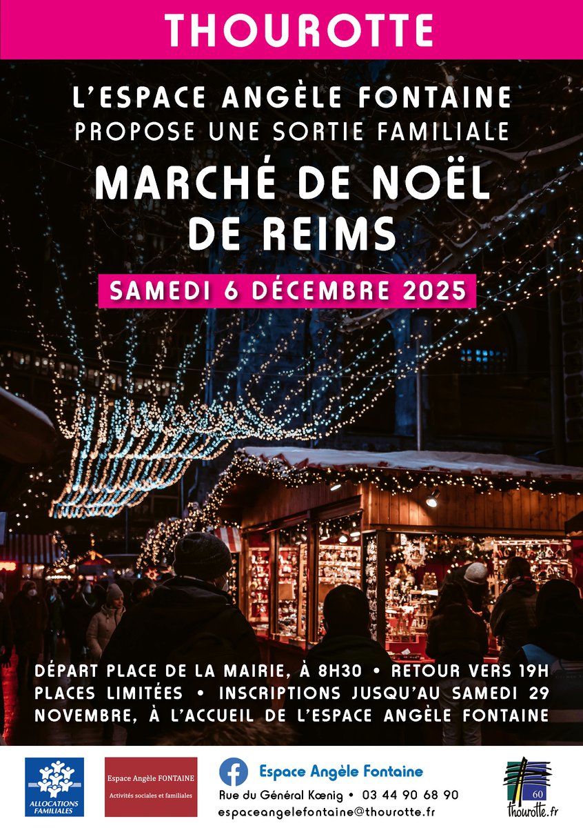 L'Espace Angèle Fontaine, votre centre d'activités familiales et sociales, vous propose une belle sortie en famille, au marché de Noël de Reims, le samedi 6 décembre 2025.